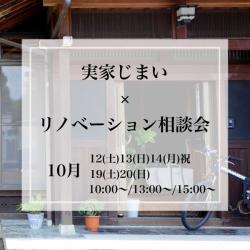 2024/10/01 10月度相談会 実家じまい×リノベーション相談会開催 *実家が古くなってきて使い勝手が悪い。 *実家が空き家になってしまうので、何か活用方法が知りたい。 *空き家を持っているが管理にお金がかかって困っている。 など、実家にお悩みをお持ちの方、 リノベーションで解決してみませんか? ※当日、敷地資料、間取り図、イメージ写真などございましたらお持ちください。 ●日程 10月12(土)13(日)14(月・祝) 19(土)20(日) ※別日をご希望の方はご相談ください。 ●開催時...