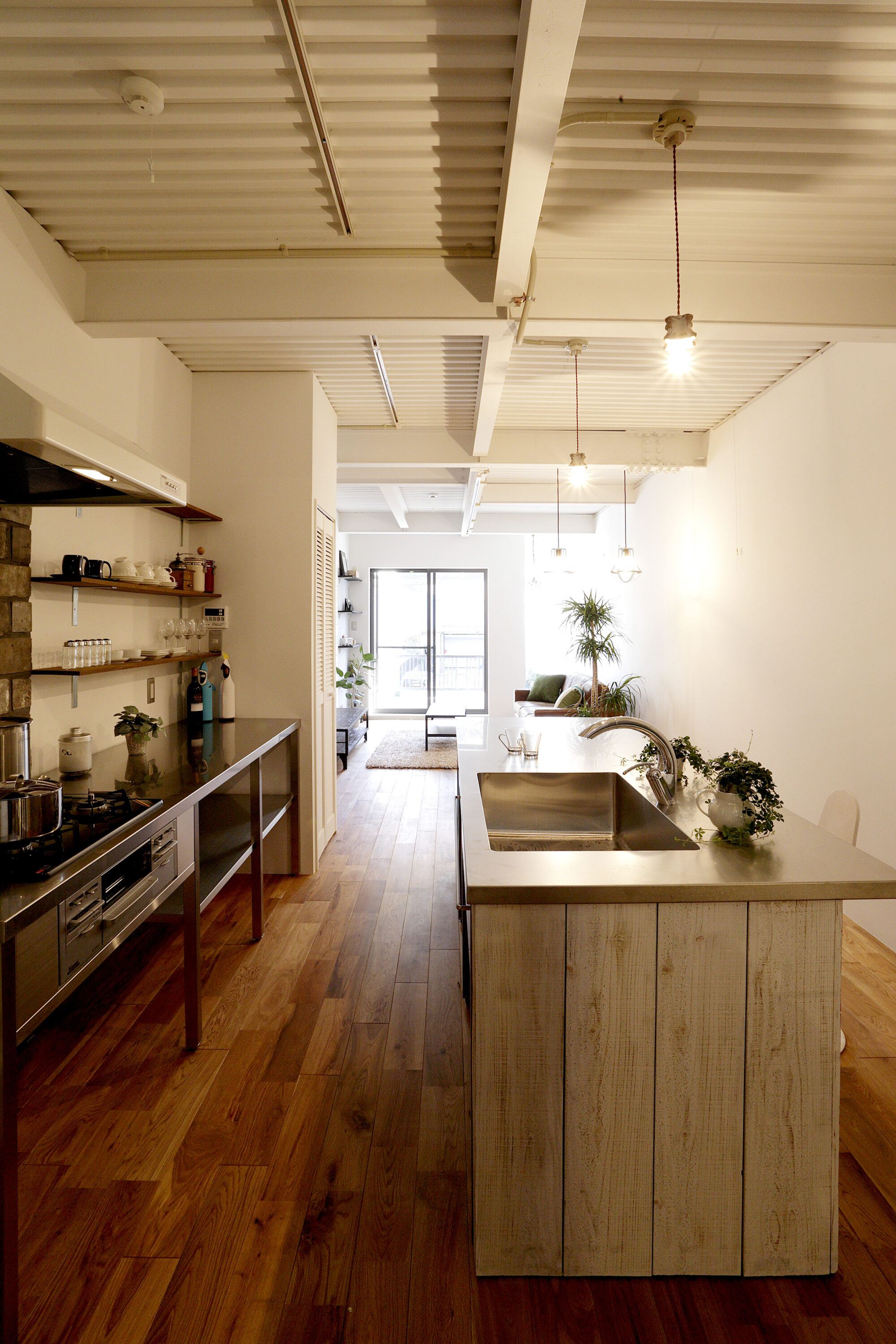 天井:鉄骨骨剥き出し+塗装仕上げ