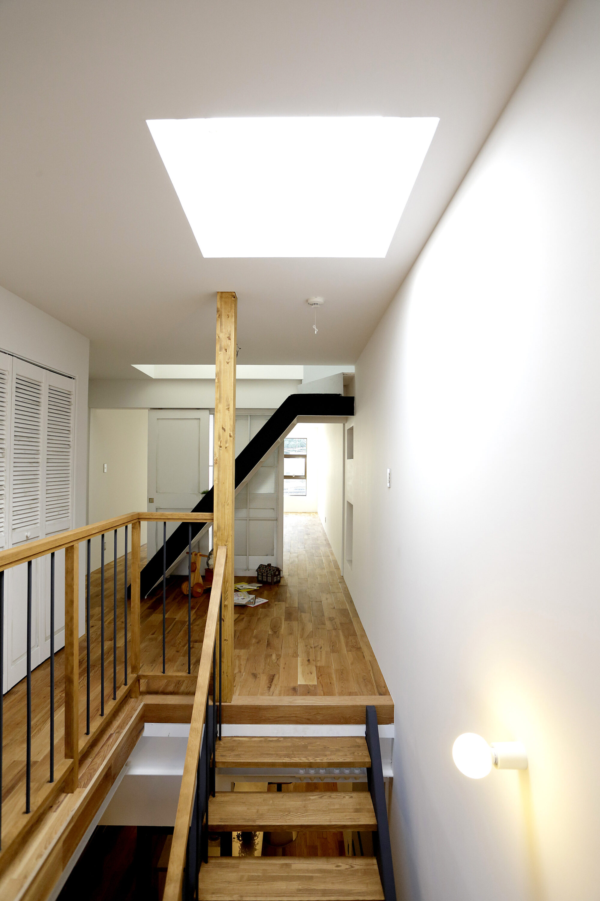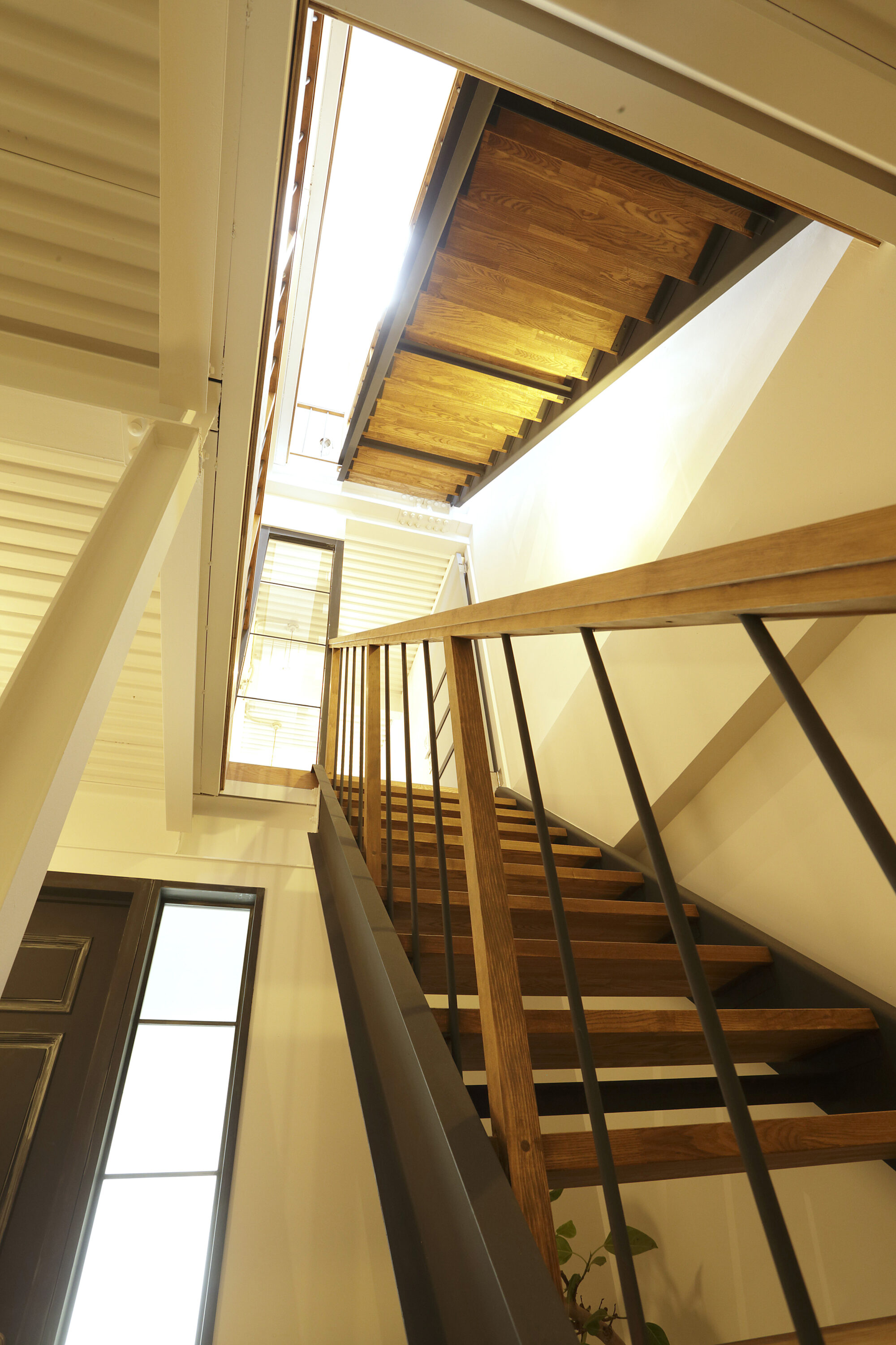 どうしても建物中央が暗くなってしまうので、階段部分に天窓を設け、光を取り入れることに。