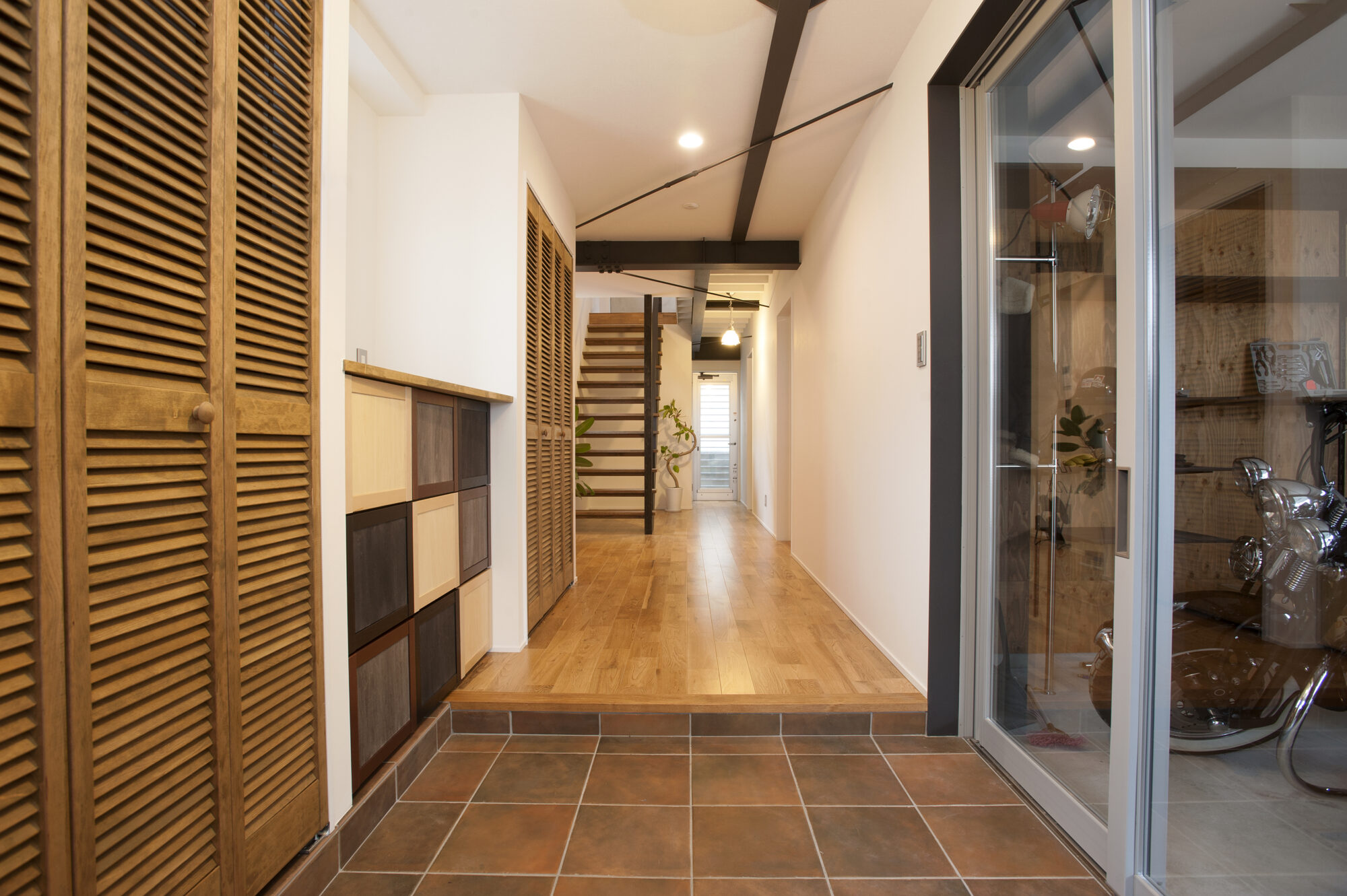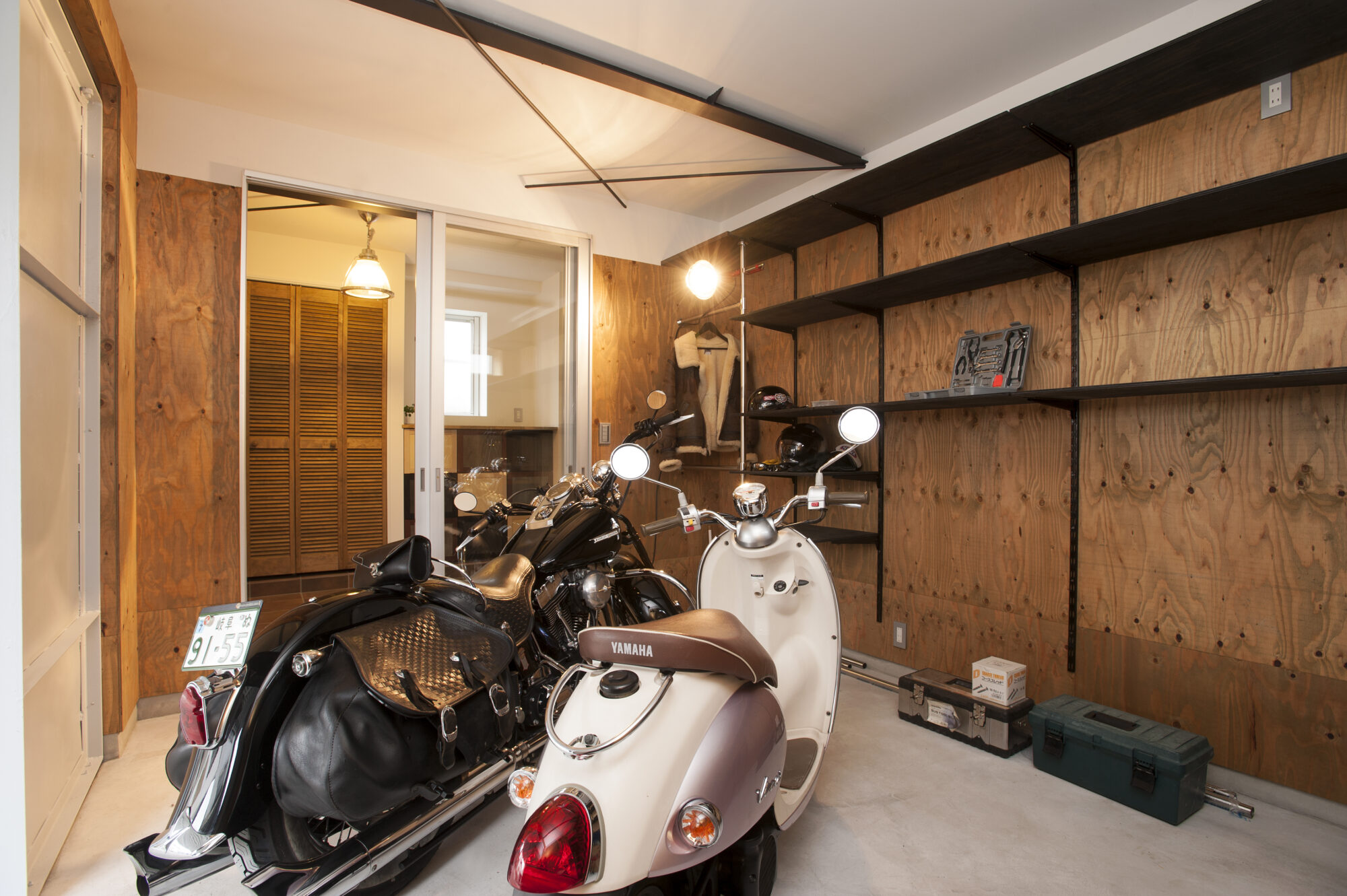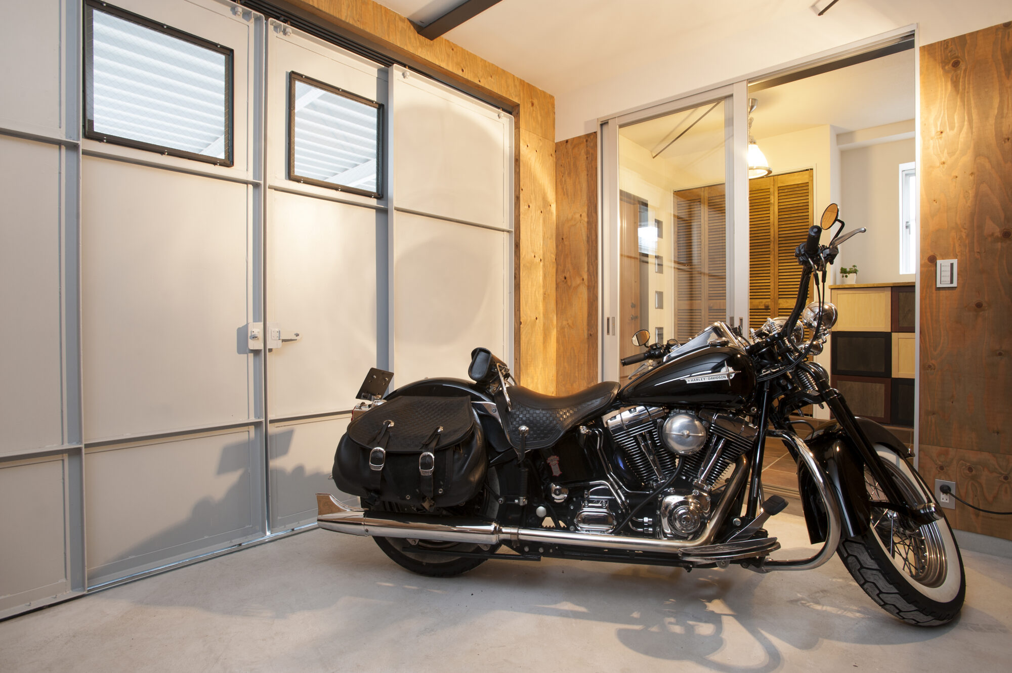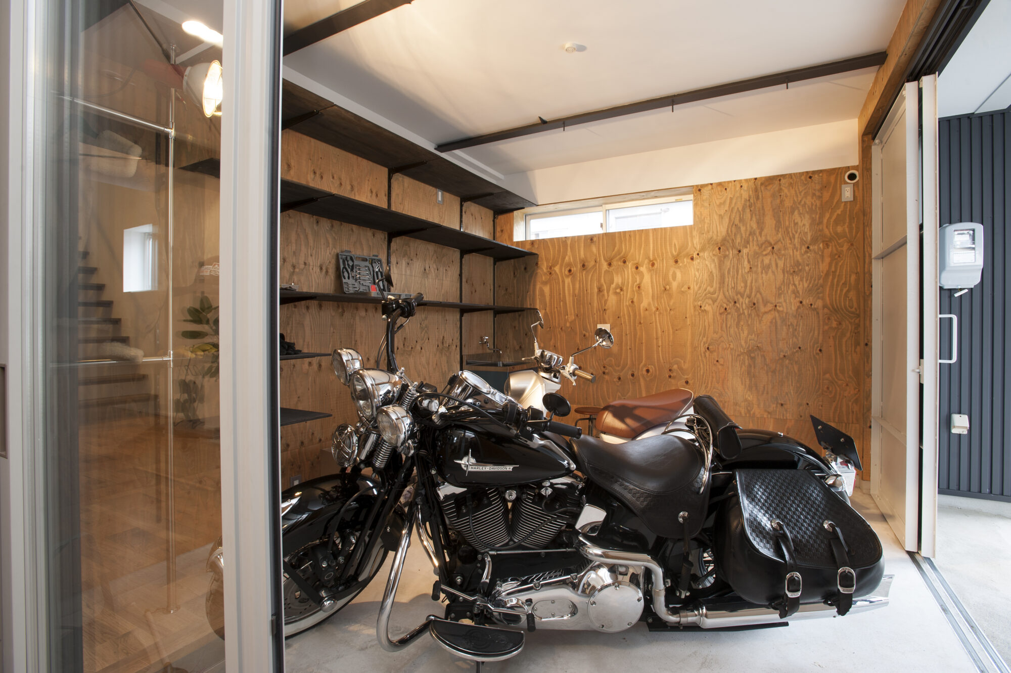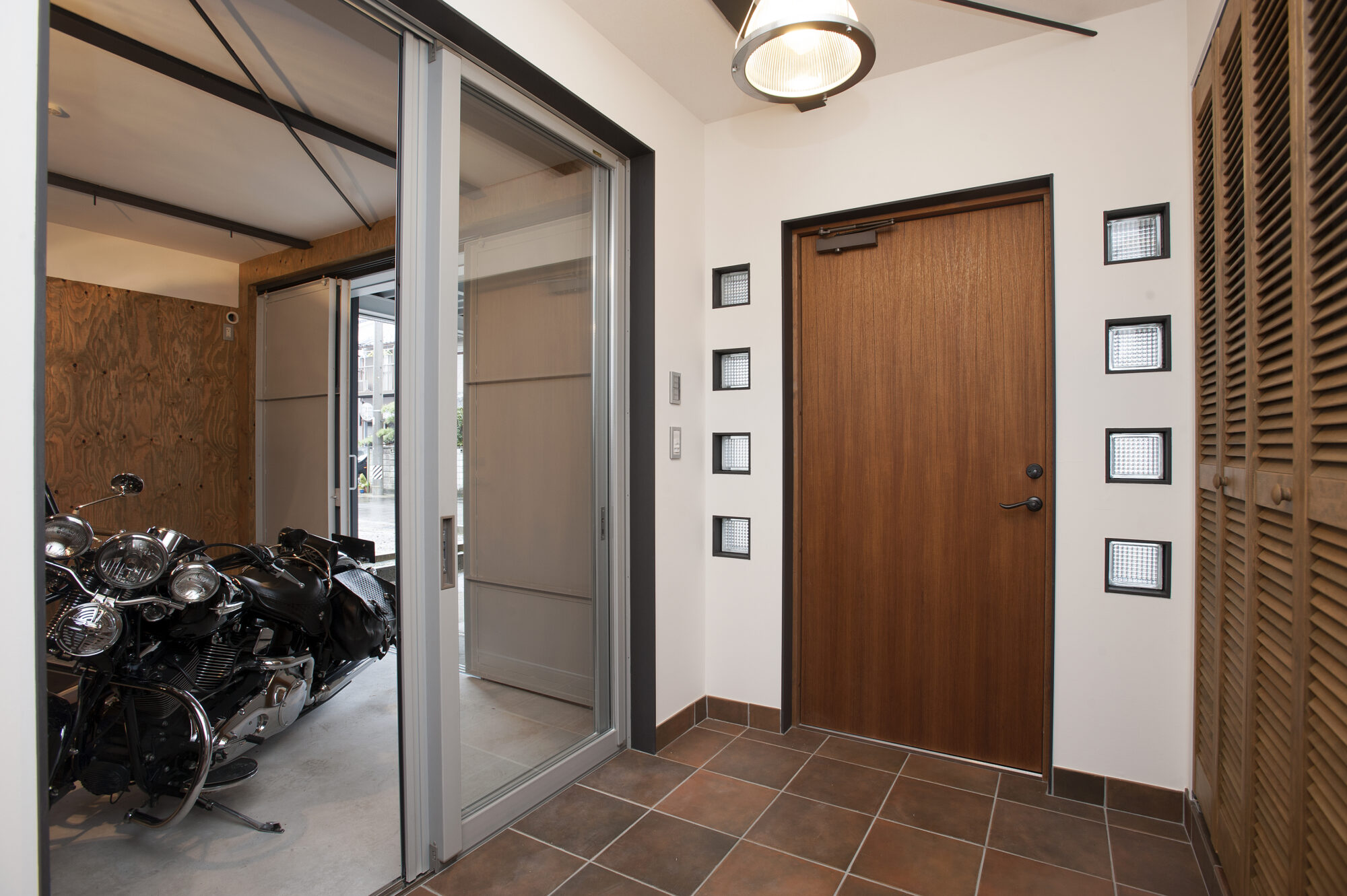 バイクが趣味のお施主様の為に、玄関の横にガレージを設けました。