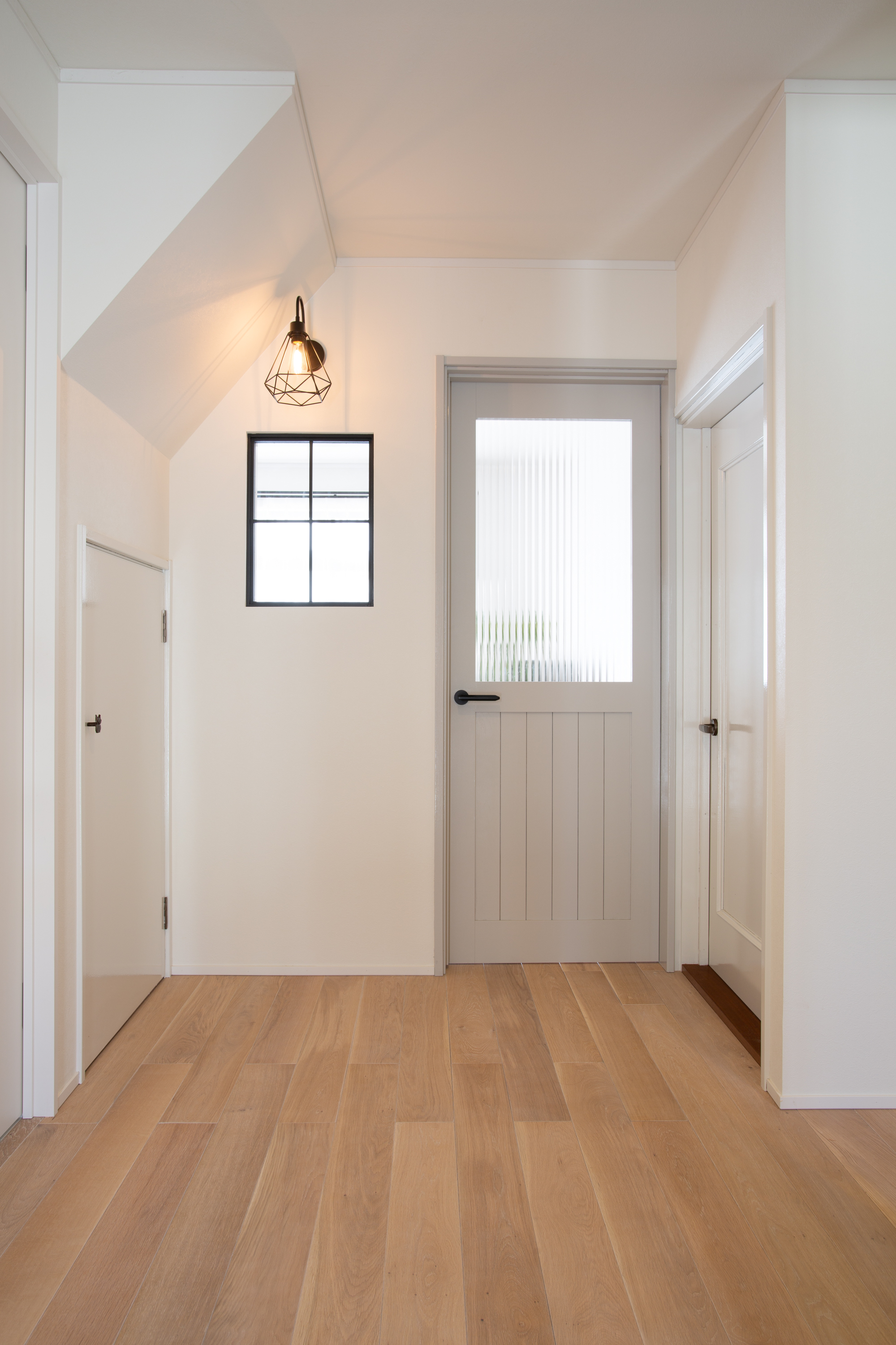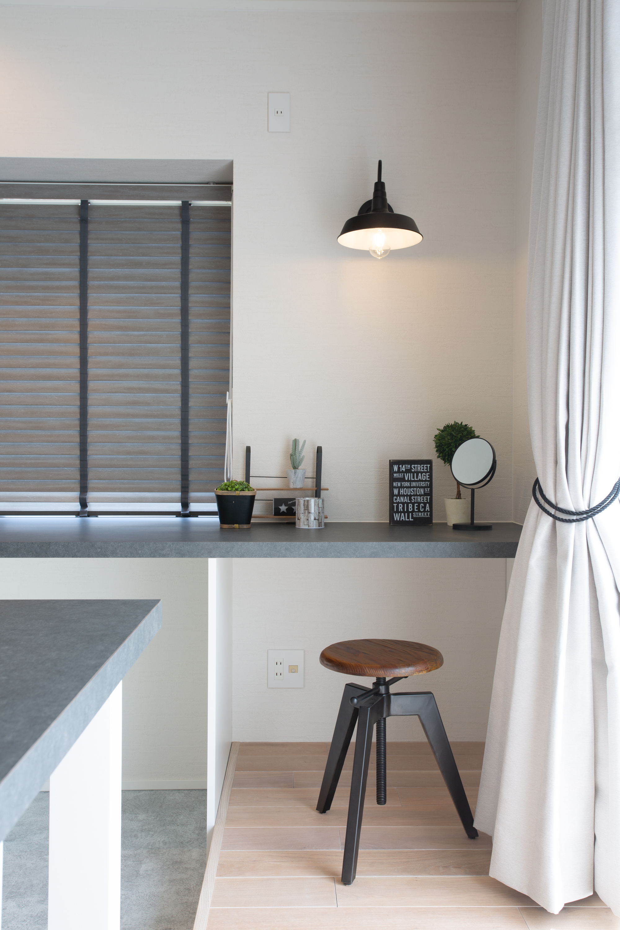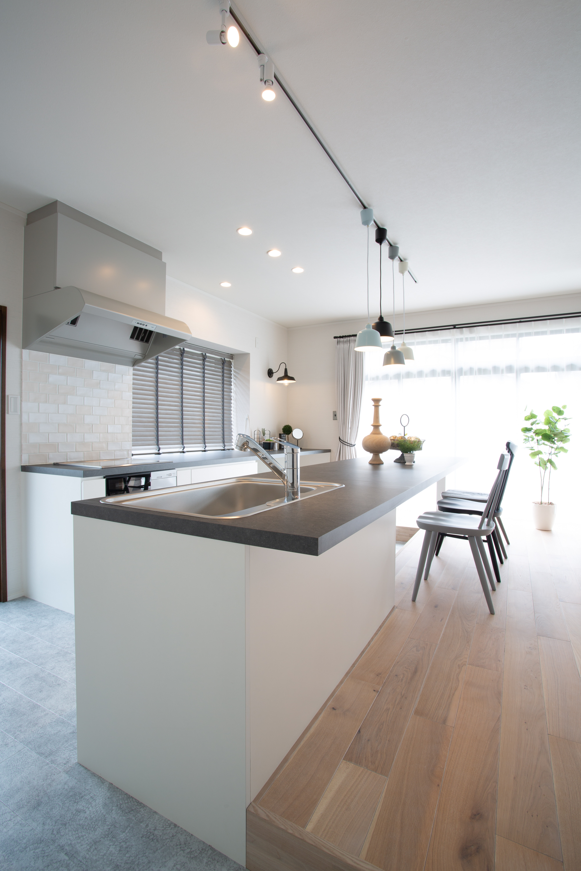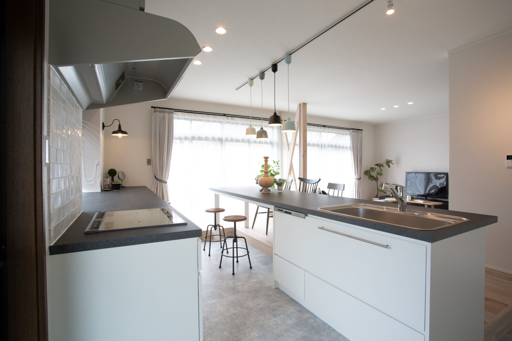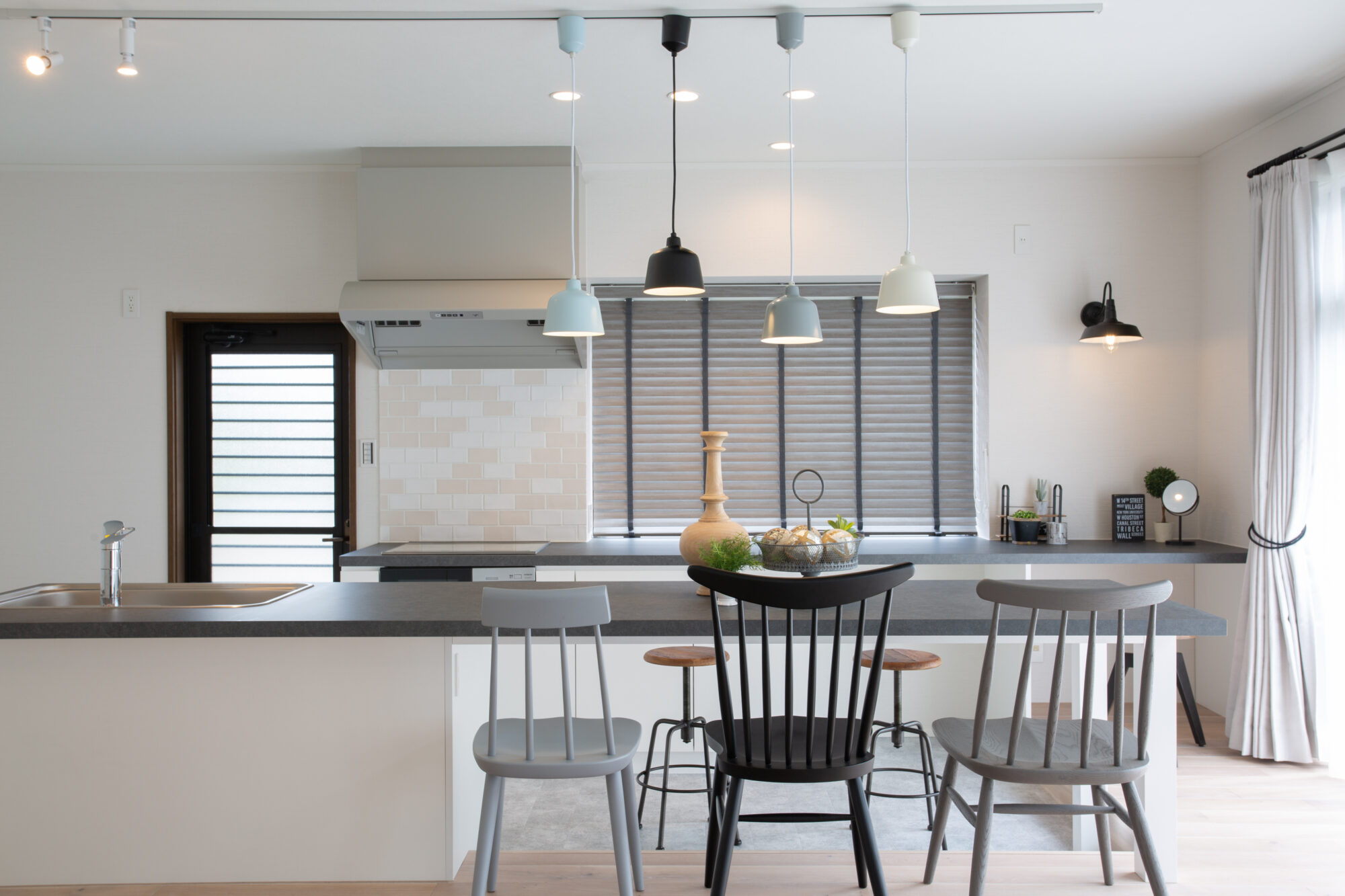 全体的に白色に統一しつつ、照明器具で挿し色を加え、