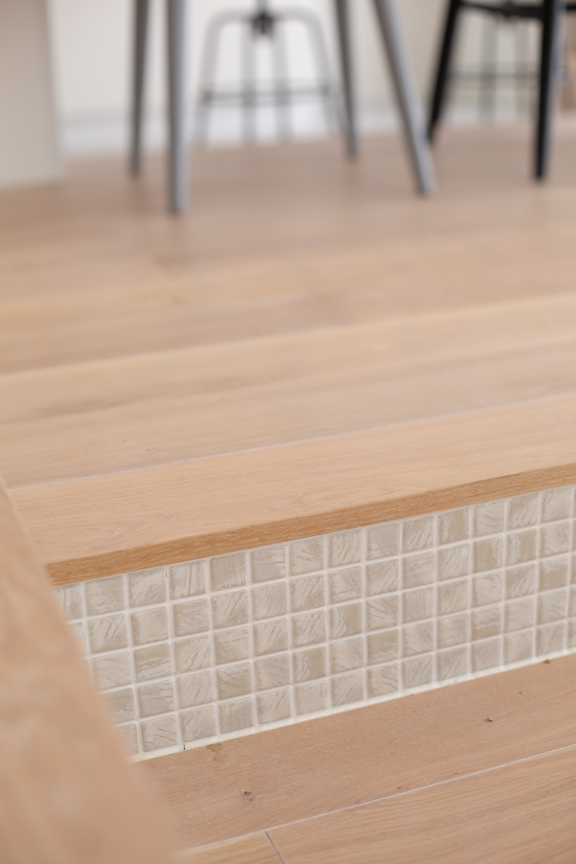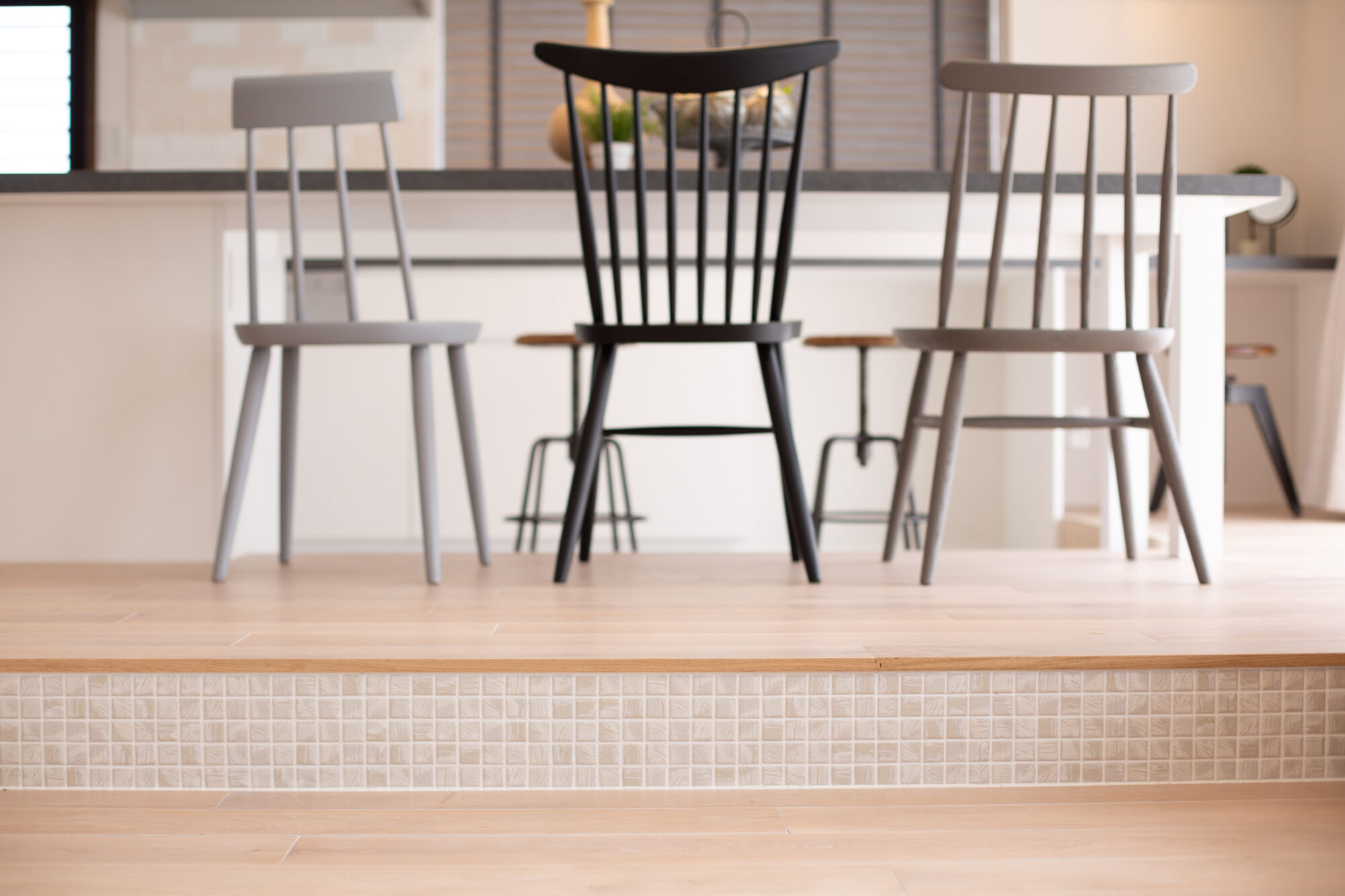 アクセントにモザイクタイルを使い、格好良く明るい空間ができました。