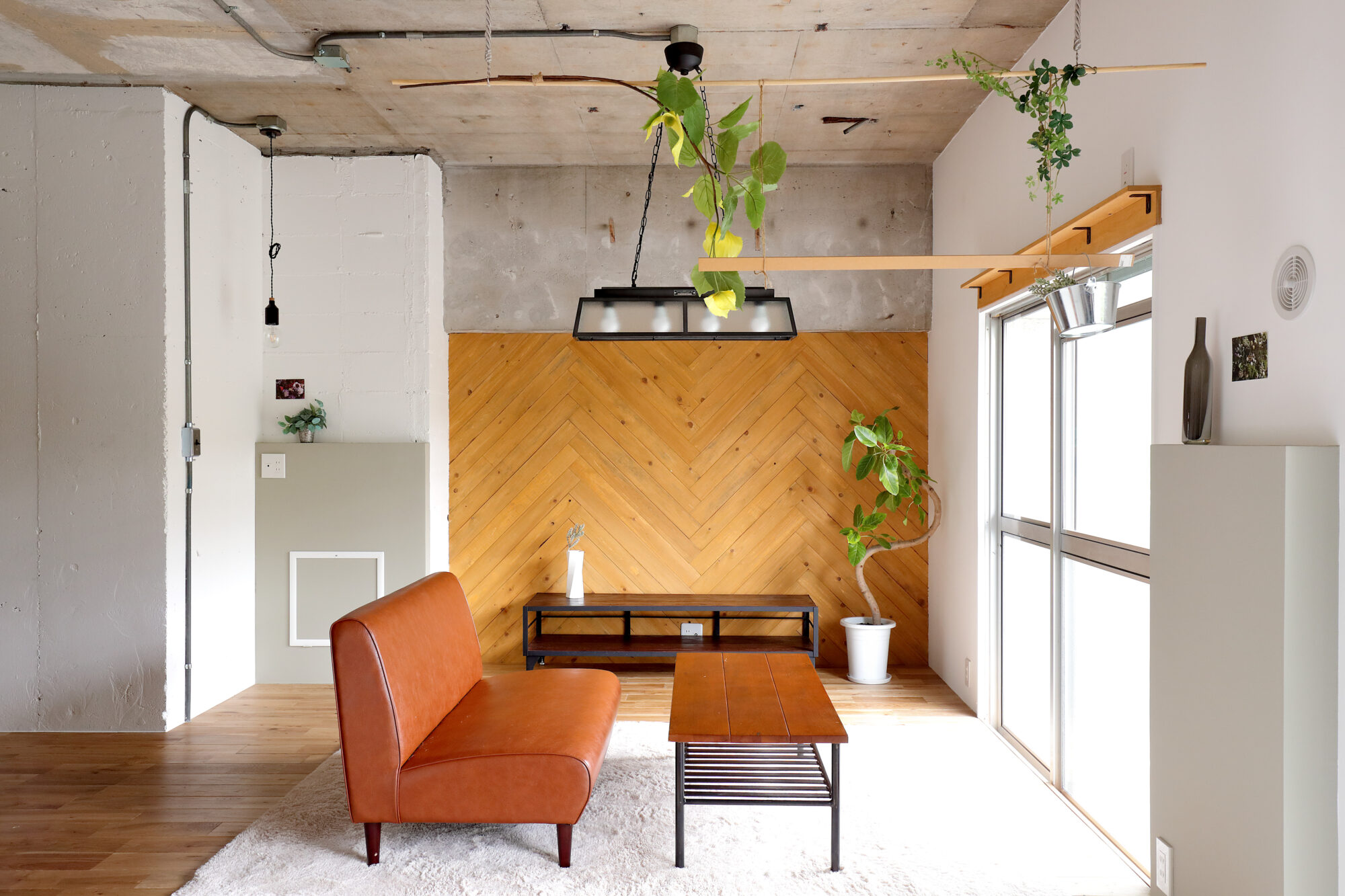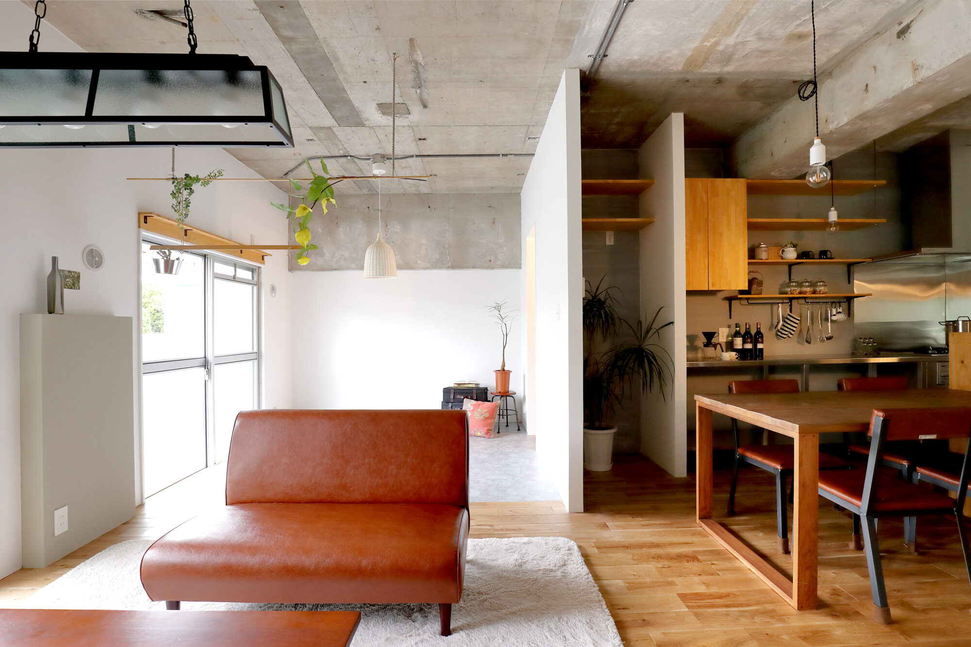 マンション特有のコンクリート素地をそのまま活かし、カッコイイ空間を演出。