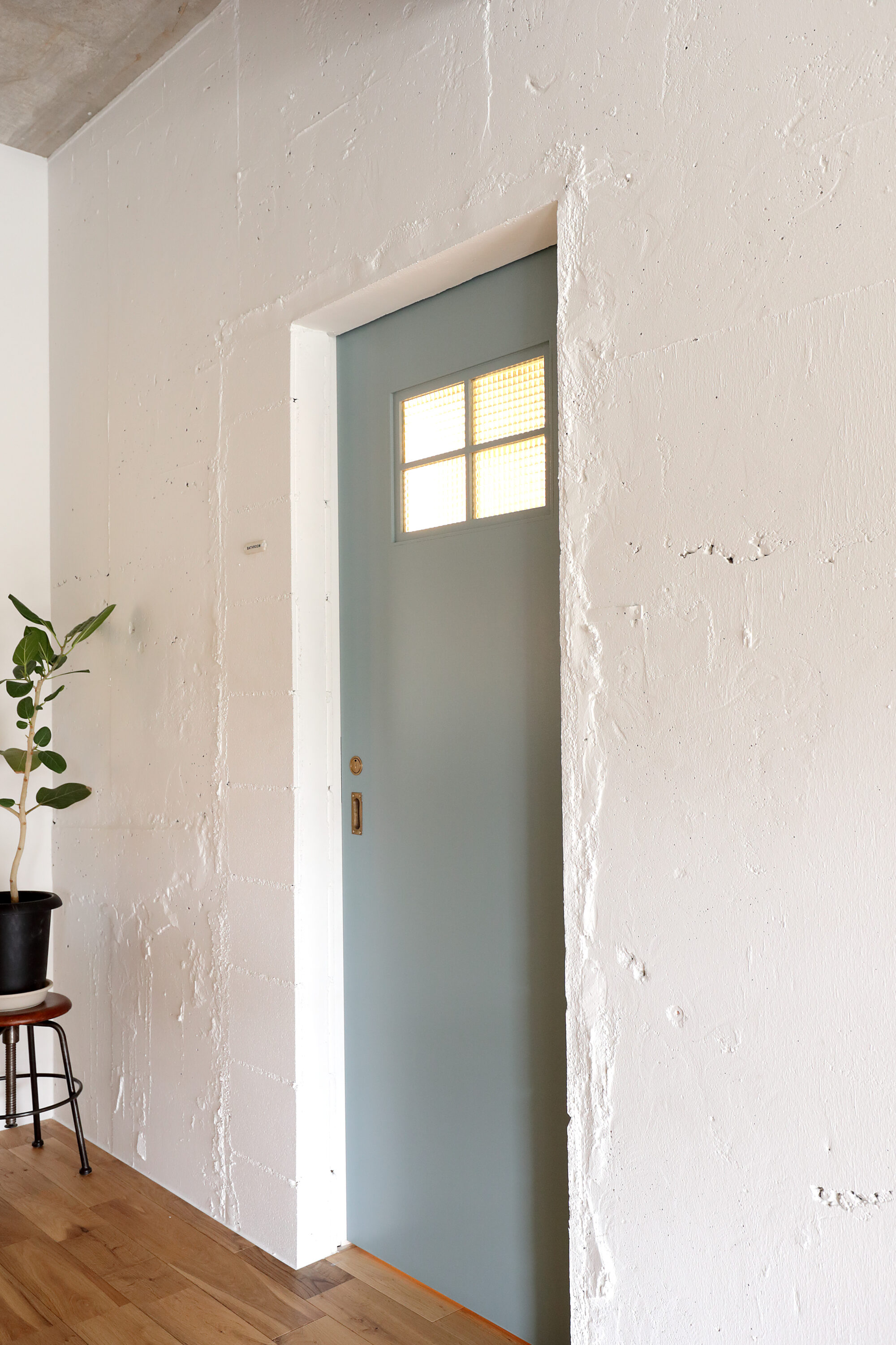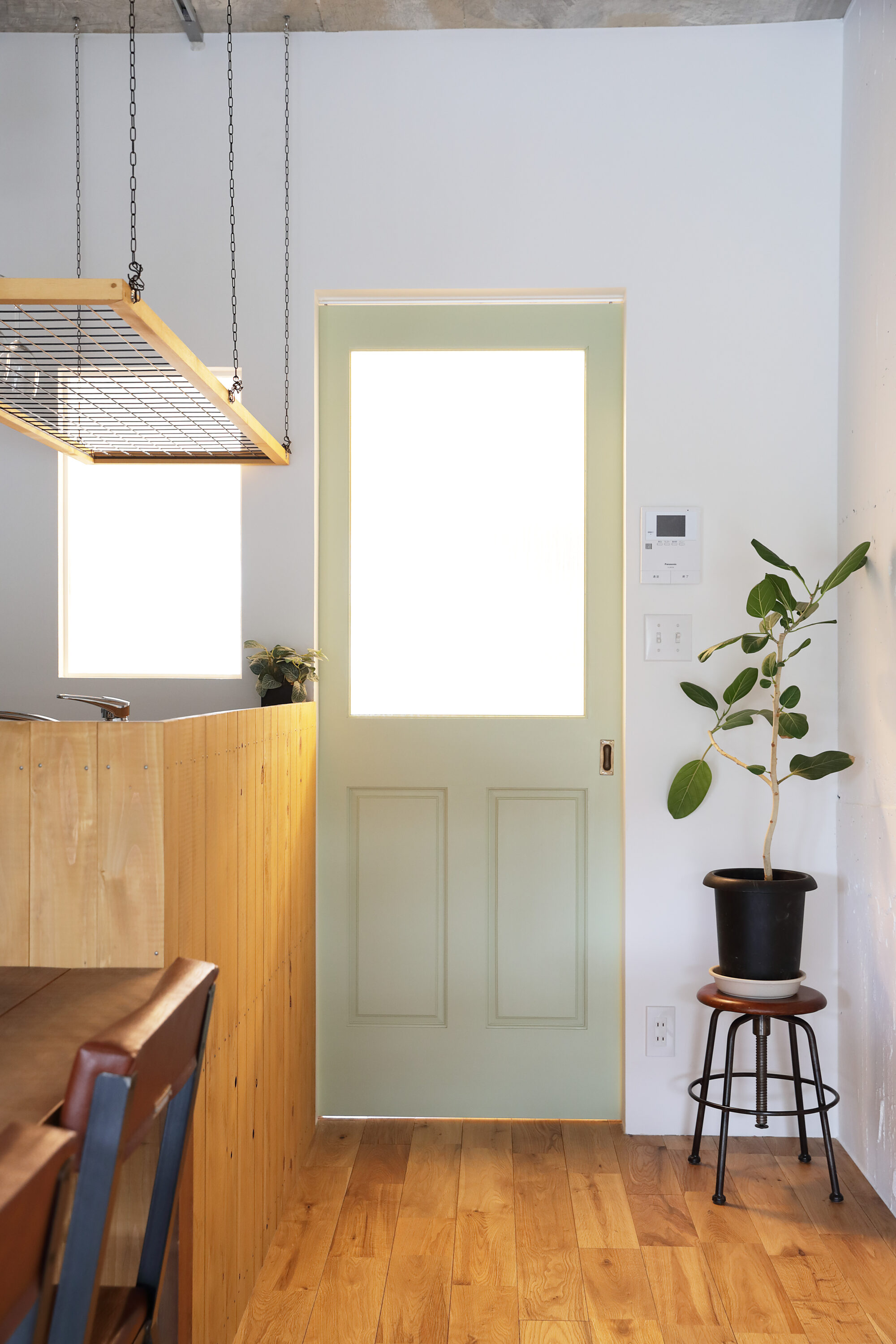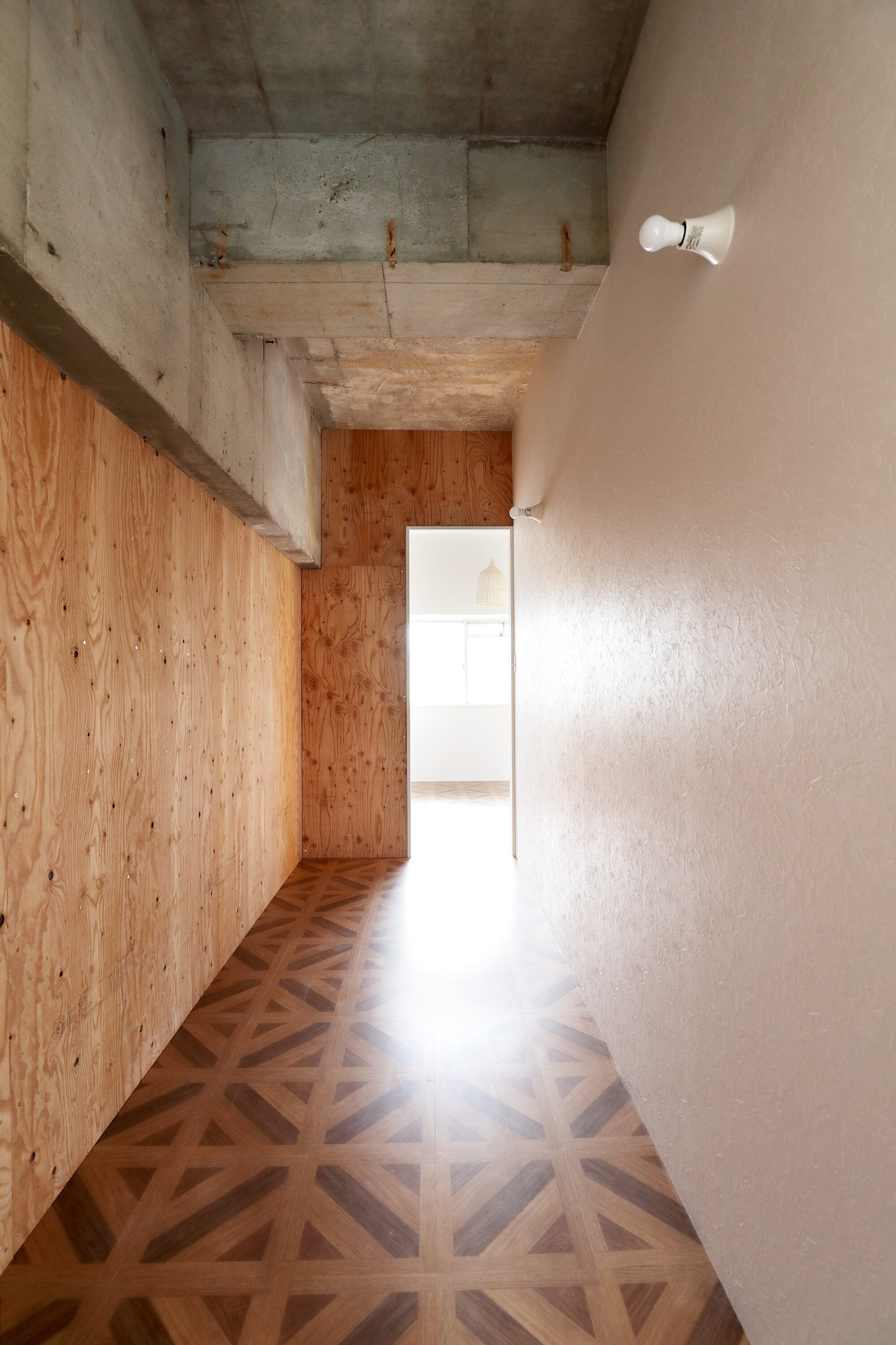 棚が後付けできるようにべニア張り仕上げとしました。