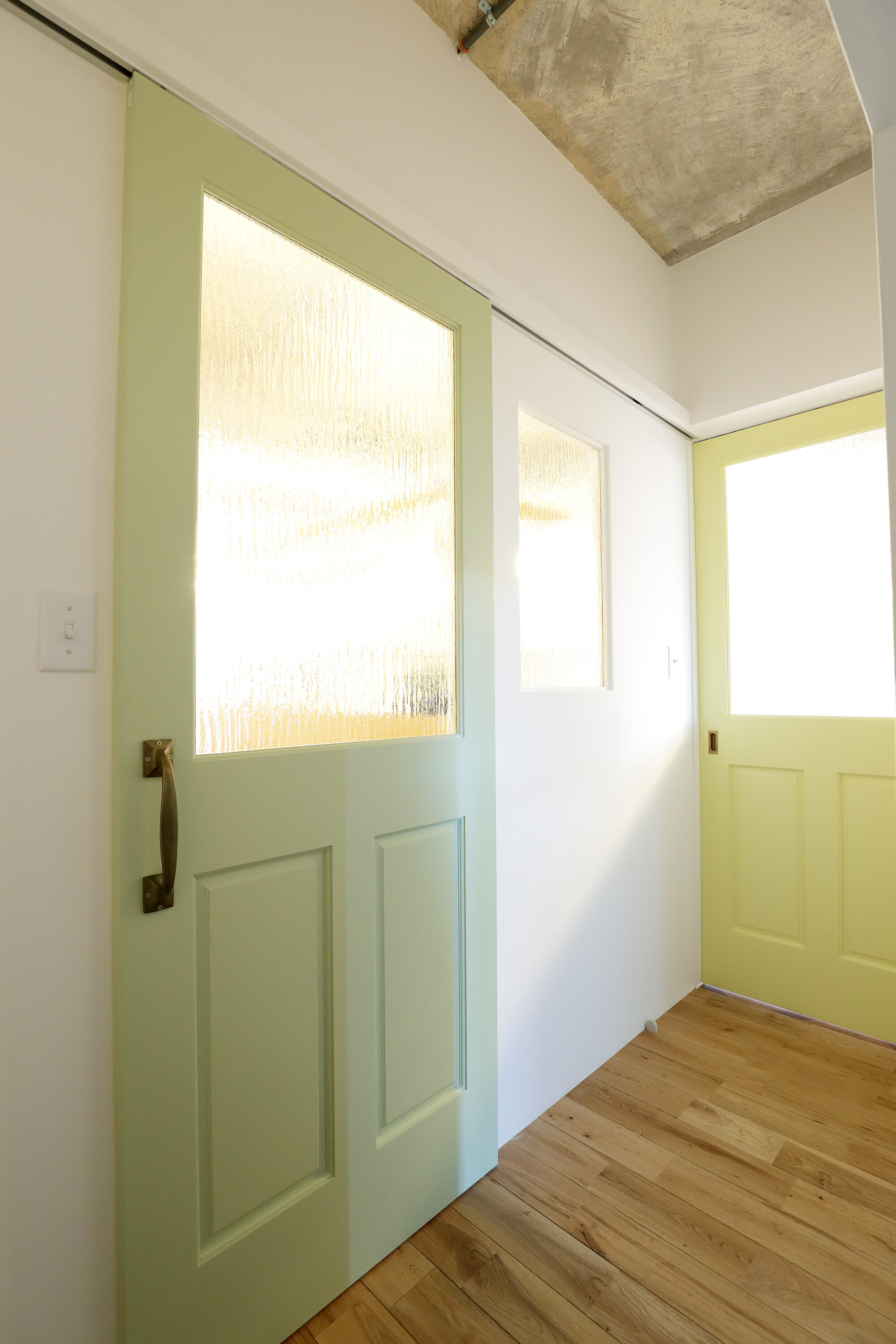 無骨なコンクリートと反してパステル調の色合いで塗装